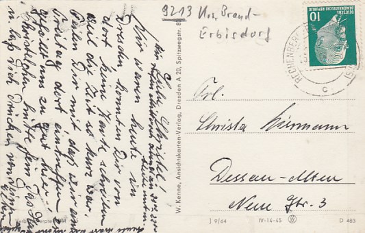 Oelsnitz im Erzgebirge Sachsen Foto Karte Ursula Pelda 1953