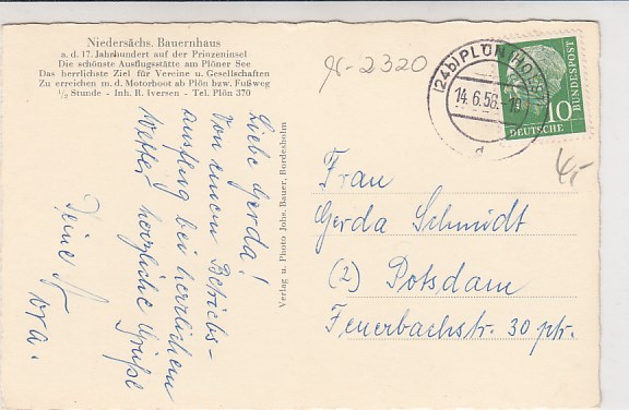 Plön in Holstein Bauernhaus auf der Prinzeninsel 1956