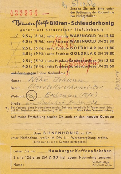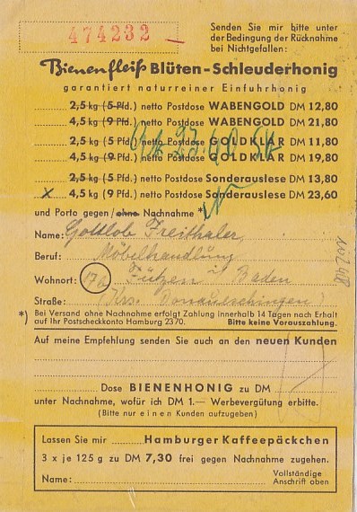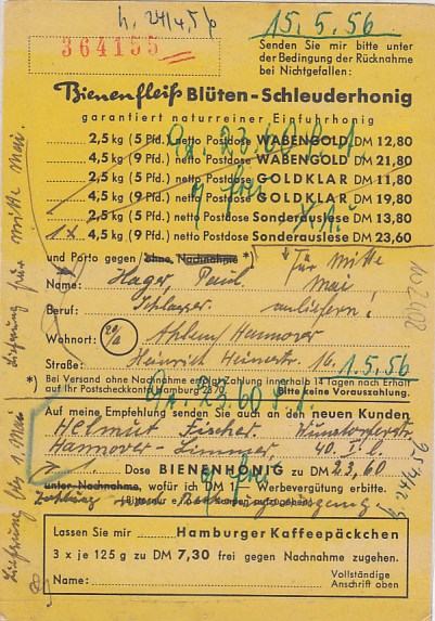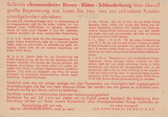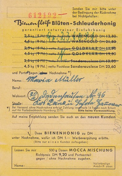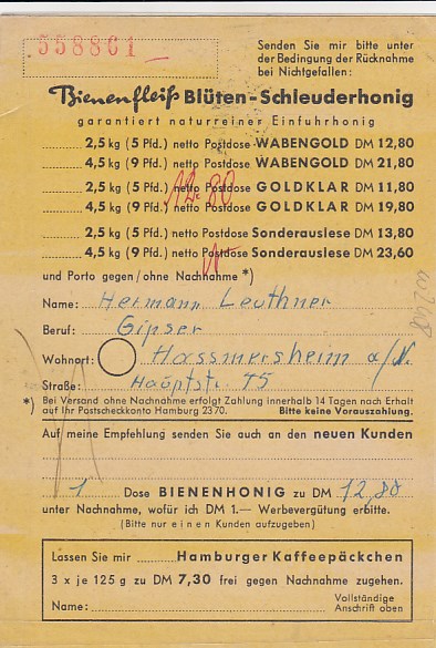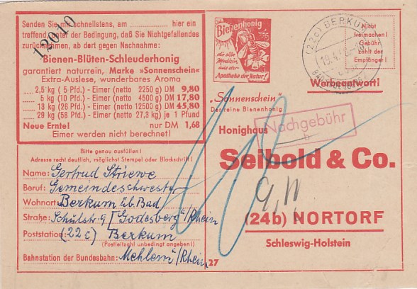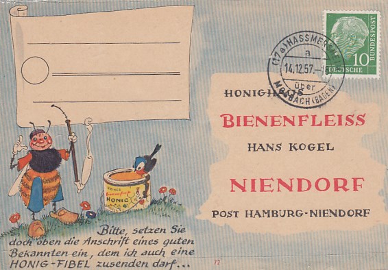 Niendorf Bienen-Blüten-Schleuderhonig Bahnpoststempel