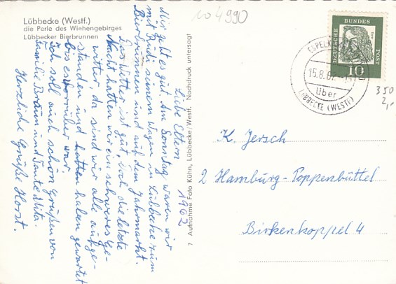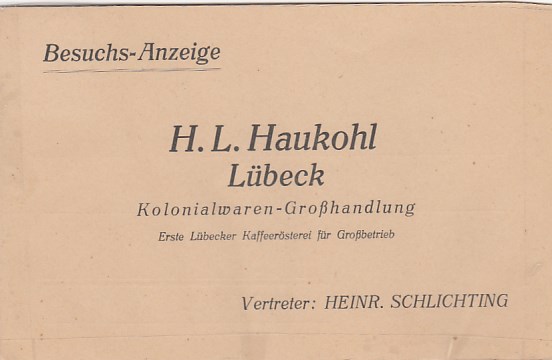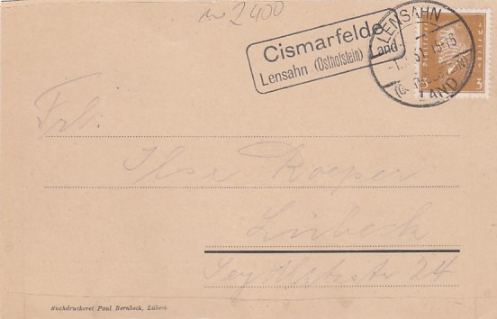 Lübeck Kolonialwaren Haukohl Landpststempel Cismarfelde Lensahn