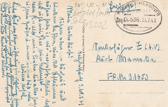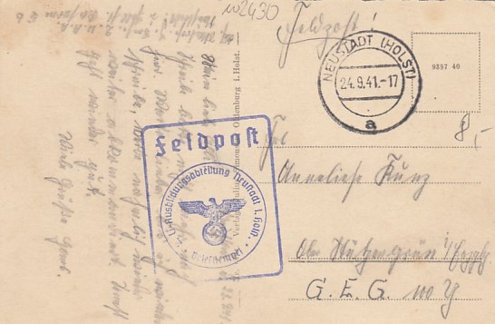 Neustadt in Holstein Hafen Feldpoststempel U-Ausbildungsabteilung 1941