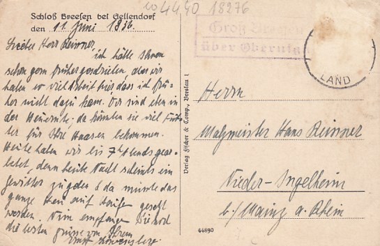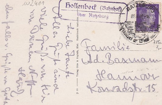 Seedorf am Schaalsee bei Ratzeburg Schloss Landpoststempel Hollenbeck Bahnhof 1942