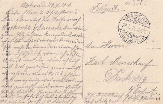 Barmen-Elberfeld Wuppertal Feldpoststempel Langerfeld 1917