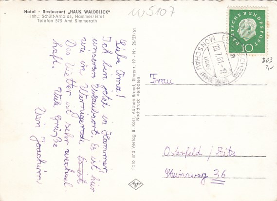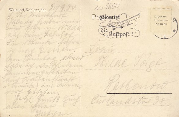 Frankfurt am Main Hospiz Kronenhof Feldpoststempel Stadt des Deutschen Handwerks