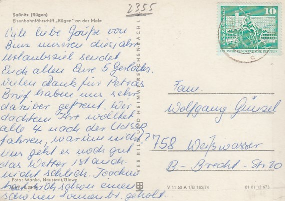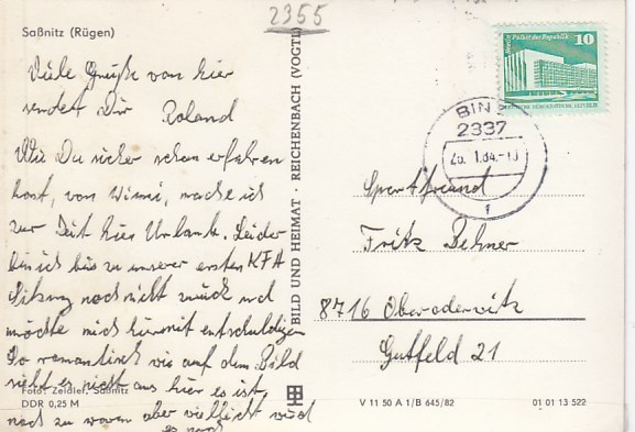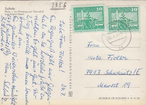 Sassnitz-Saßnitz auf Rügen DDR color AK 1955