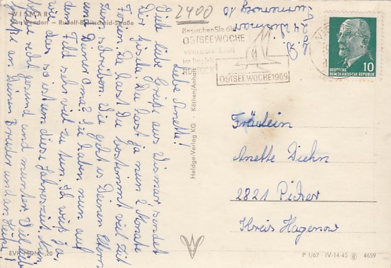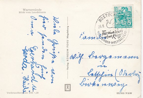 Warnemünde Anlaß Stempel Weltfrieden 1960
