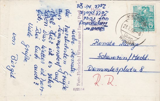 Rostock Hafen Anlaß Stempel Weltfriedenstag 1960