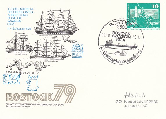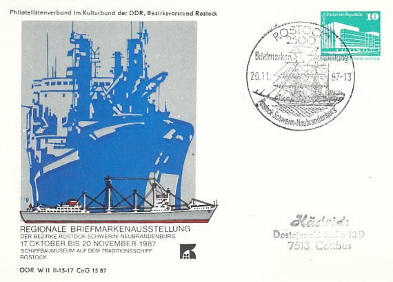 Rostock Anlaß Postkarte Briefmarkenausstellung