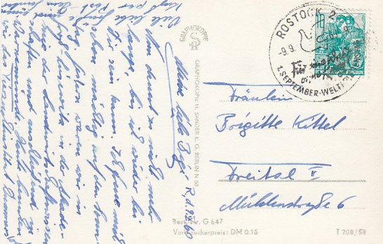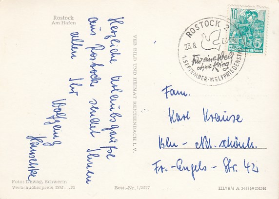 Rostock Anlaß Stempel Weltfriedenstag 1960