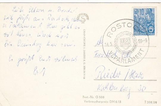 Rostock Warnemünde Anlaß Stempel Parlament 1959 FDJ