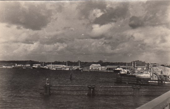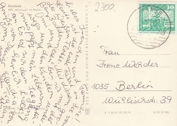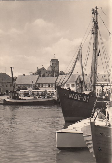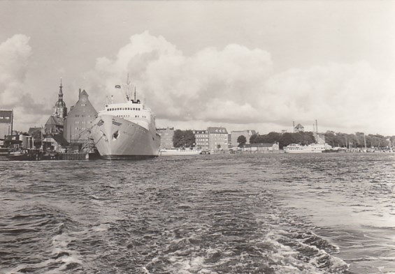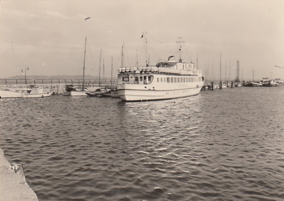 Stralsund Motorschiff Wustrow im Hafen 1974