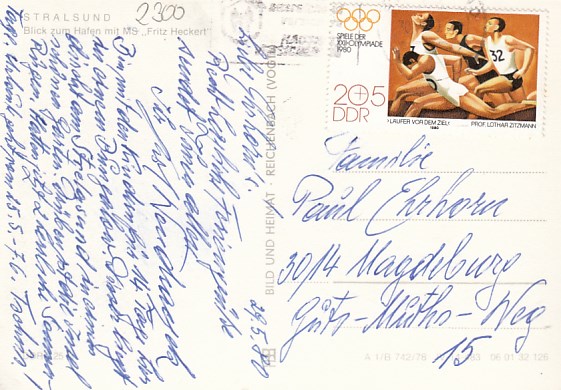 Stralsund Motorschiff Fritz Heckert im Hafen 1978