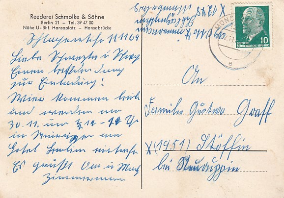 Berlin Rederei Schmolke und Söhne Hansaplatz Motorschiff Merkur und Amor
