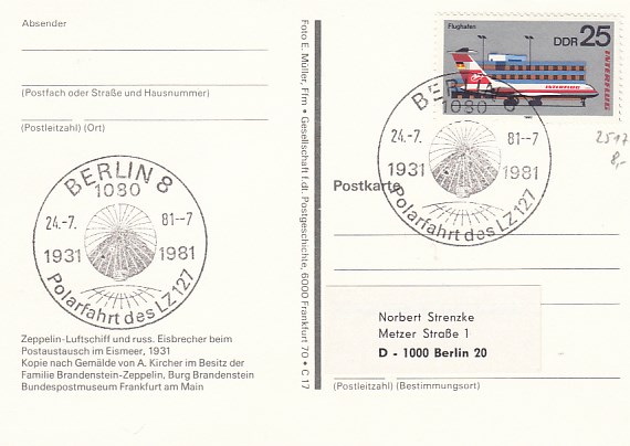 Berlin Anlaß Stempel Polarfahrt Zeppelin