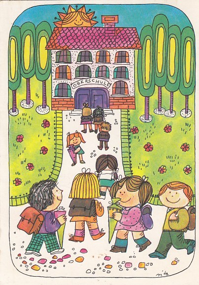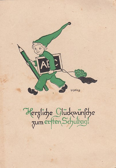 Glückwunsch AK Ansichtskarte zur Einschulung Schulanfang Künstlerkarte U.Hönig