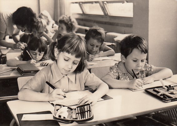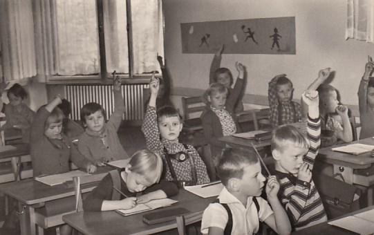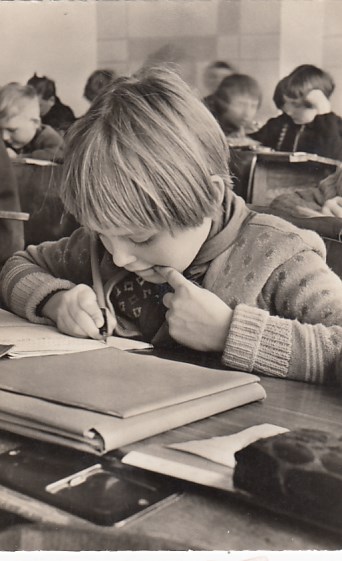 Glückwunsch AK Ansichtskarte zur Einschulung Schulanfang Klassenzimmer