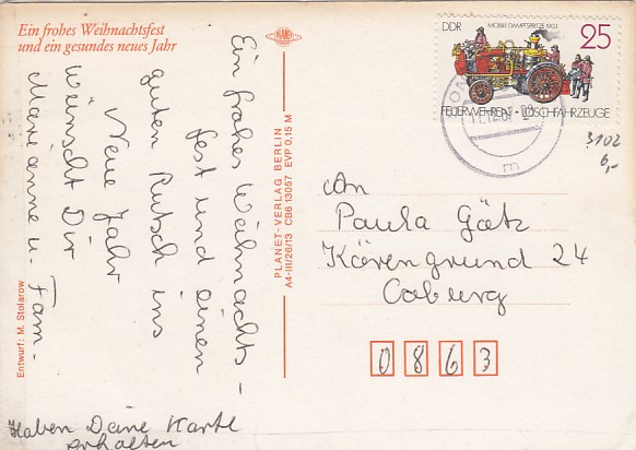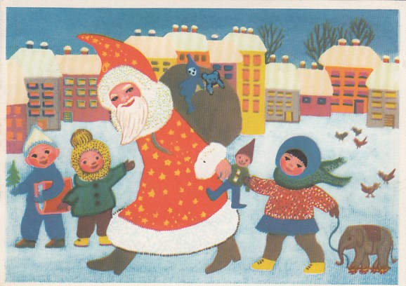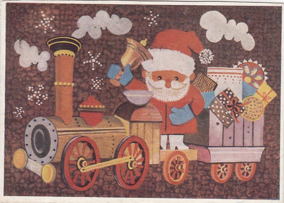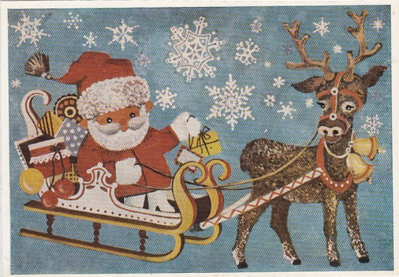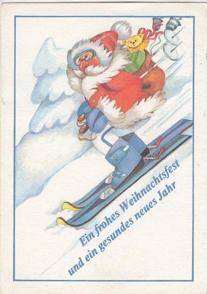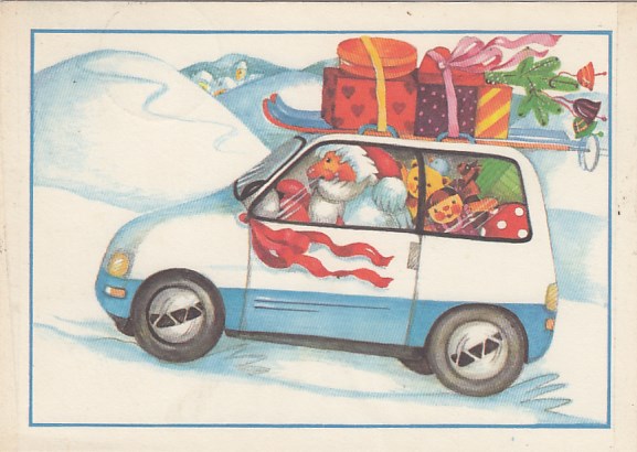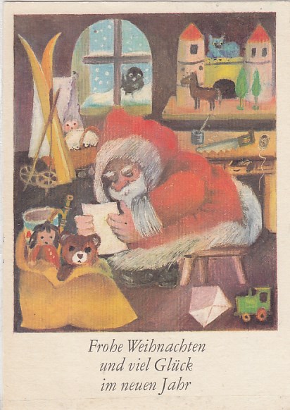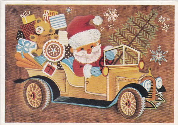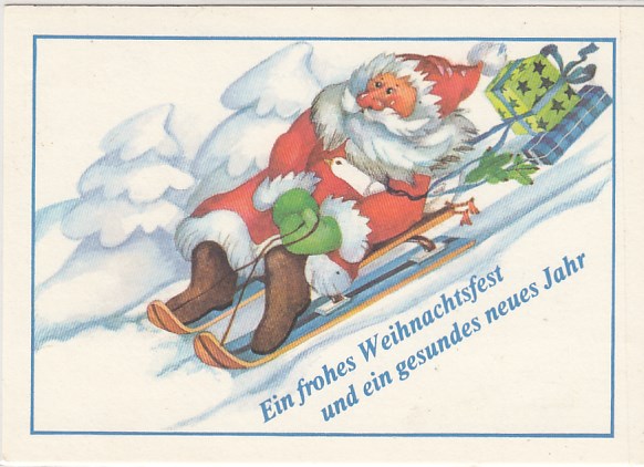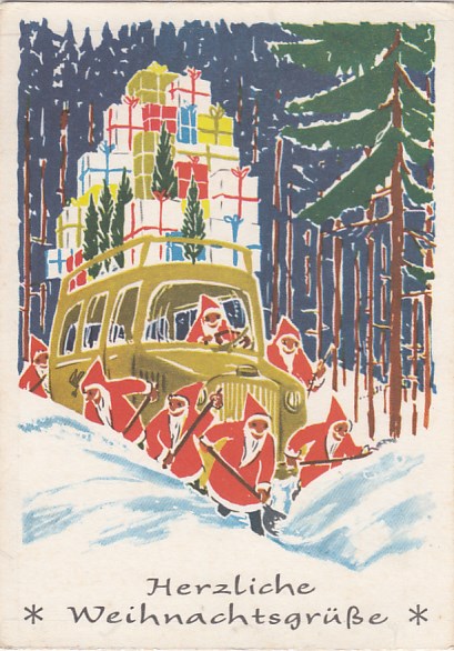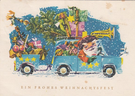 Glückwunsch AK Ansichtskarte Frohe Weihnachten Weihnachtsmann DDR Auto mit Hänger