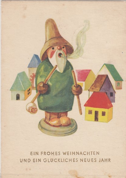 Glückwunsch AK Ansichtskarte Frohe Weihnachten Räuchermännchen