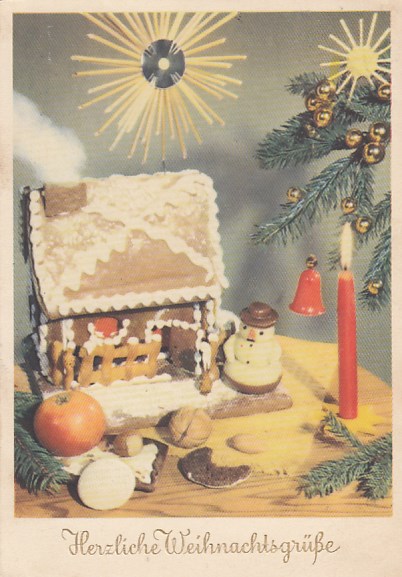 Glückwunsch AK Ansichtskarte Frohe Weihnachten Lebkuchen Haus