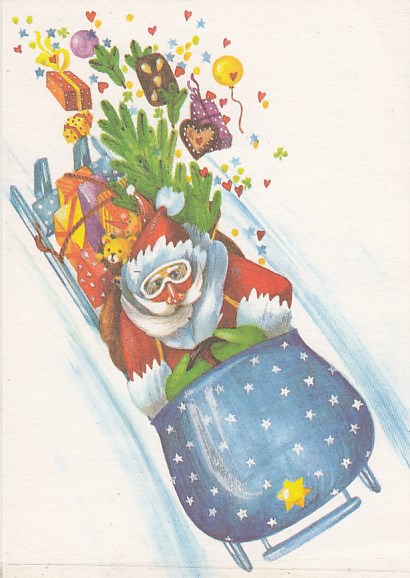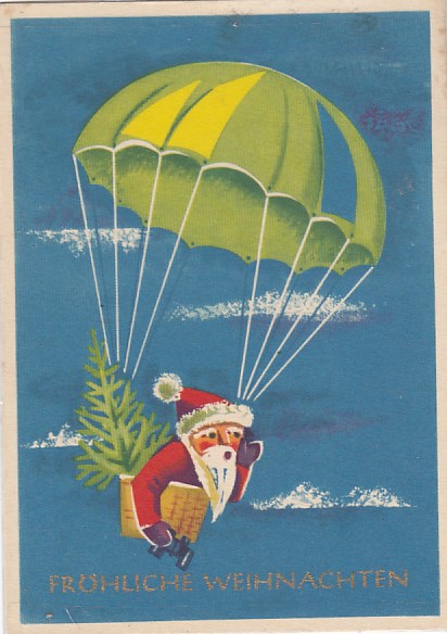Glückwunsch AK Ansichtskarte Frohe Weihnachten Weihnachtsmann Fallschirm
