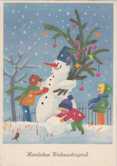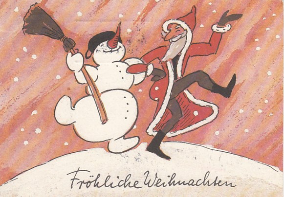 Glückwunsch AK Ansichtskarte Frohe Weihnachten Weihnachtsmann Schneemann