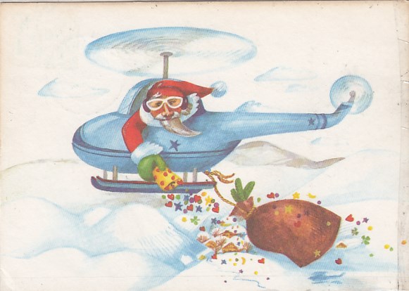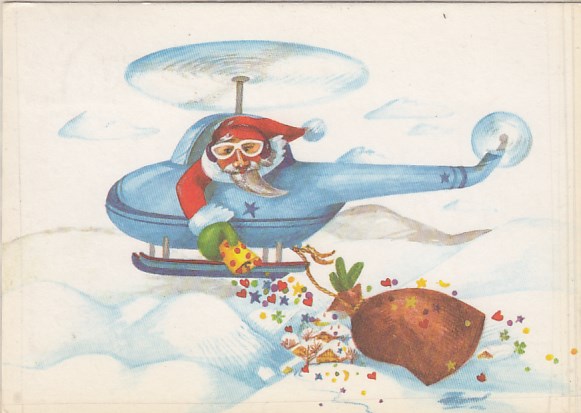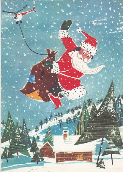 Glückwunsch AK Ansichtskarte Frohe Weihnachten Weihnachtsmann Hubschrauber