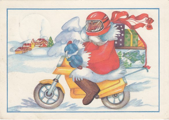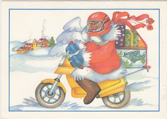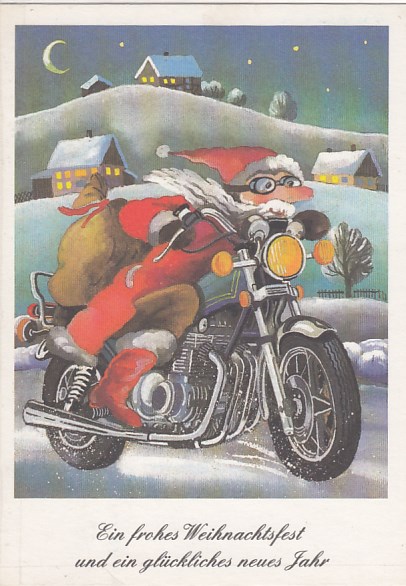 Glückwunsch AK Ansichtskarte Frohe Weihnachten Weihnachtsmann Motorrad
