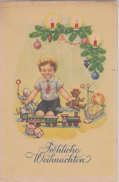 Glückwunsch AK Ansichtskarte Frohe Weihnachten Spielzeug Eisenbahn