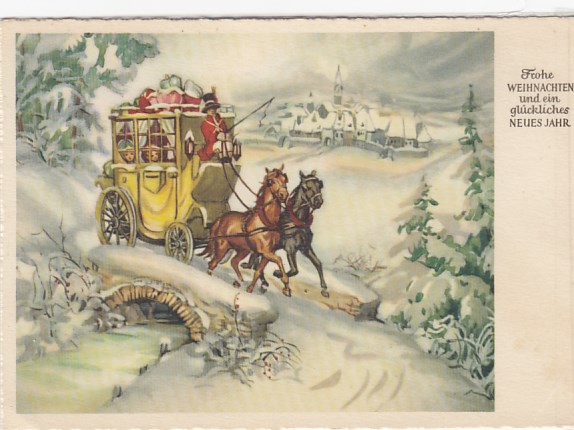 Glückwunsch AK Ansichtskarte Frohe Weihnachten Postkutsche