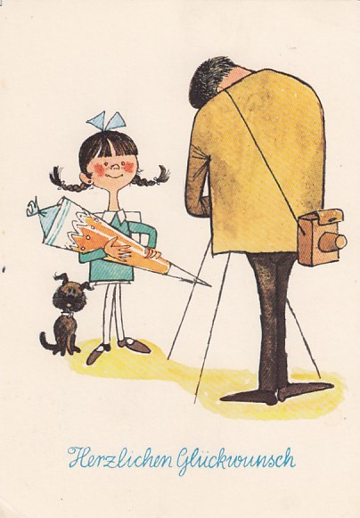 Glückwunsch AK Ansichtskarte zur Einschulung Schulanfang Schultüten Foto Aparat