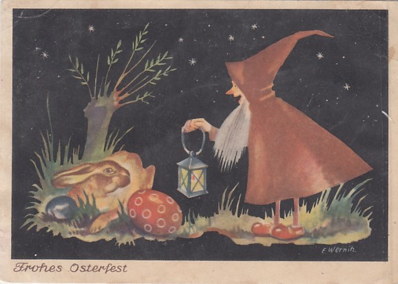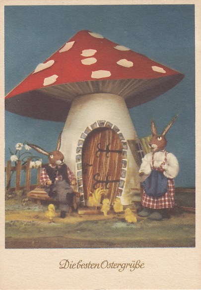 Glückwunsch AK Frohe Ostern Ansichtskarte Hasen Pilze