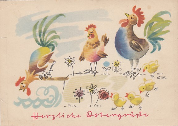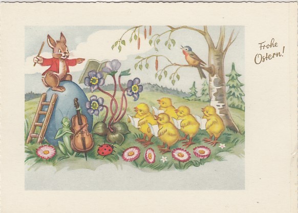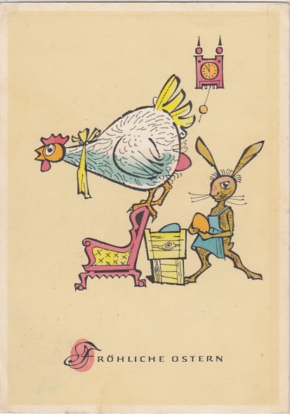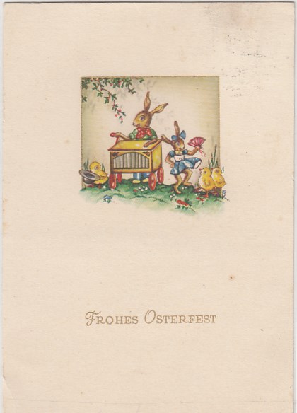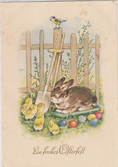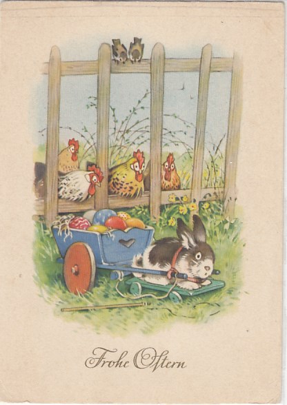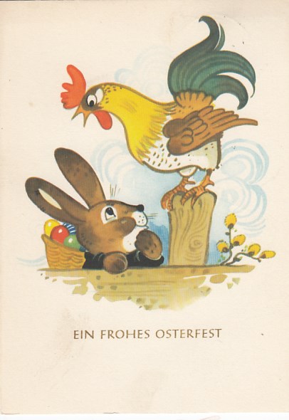 Glückwunsch AK Frohe Ostern Ansichtskarte Hasen Hühner