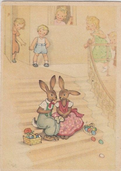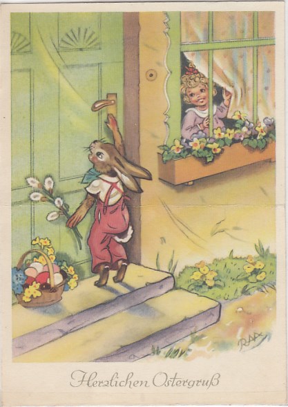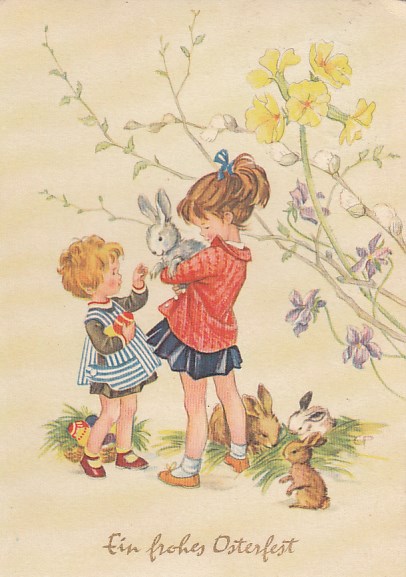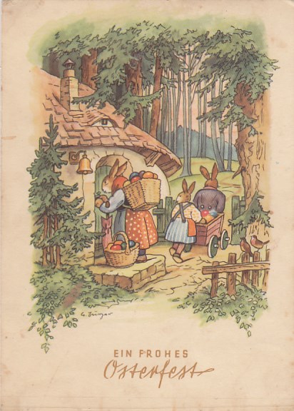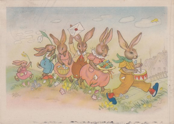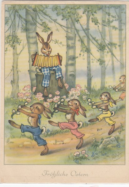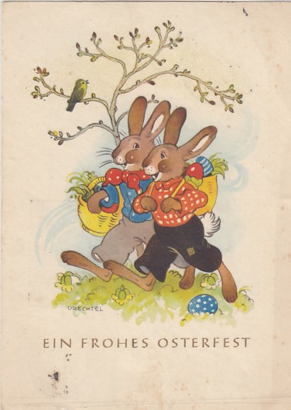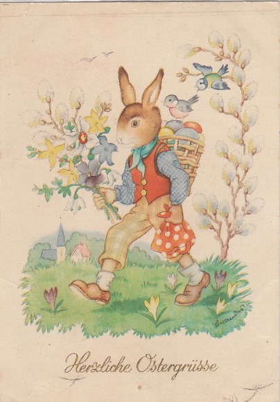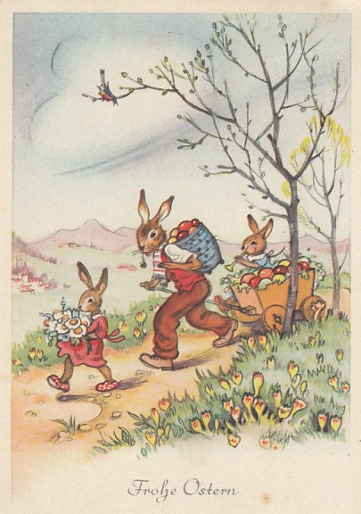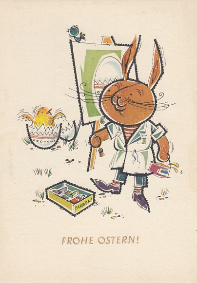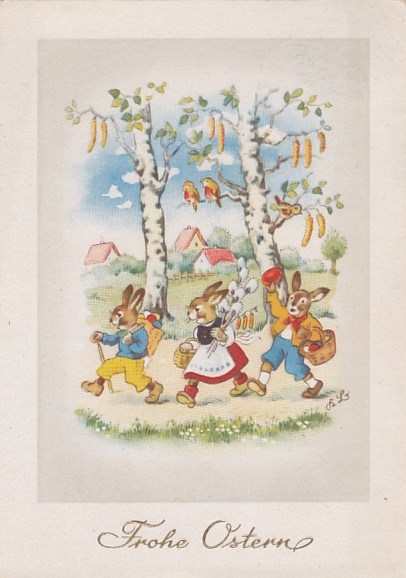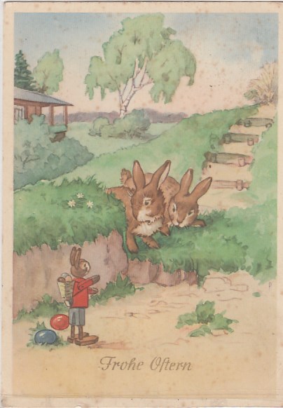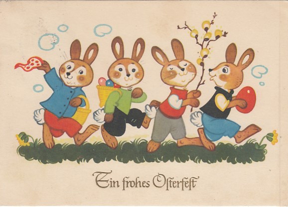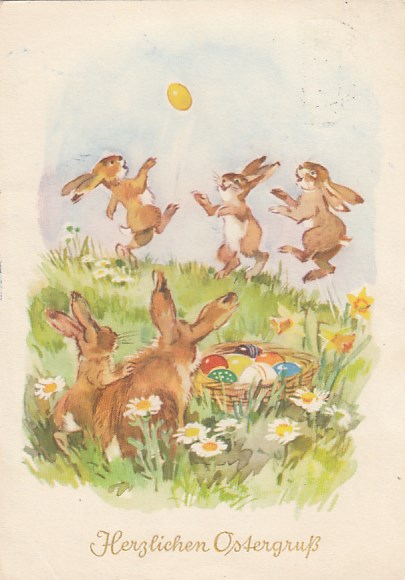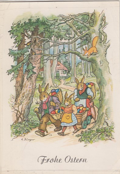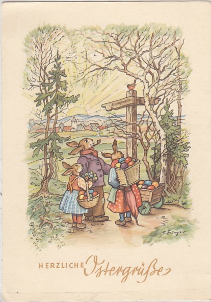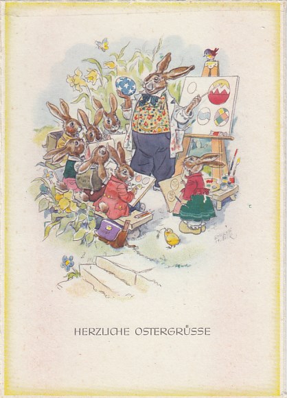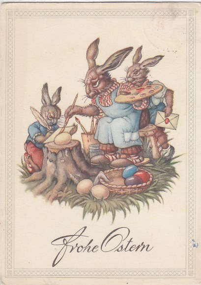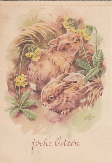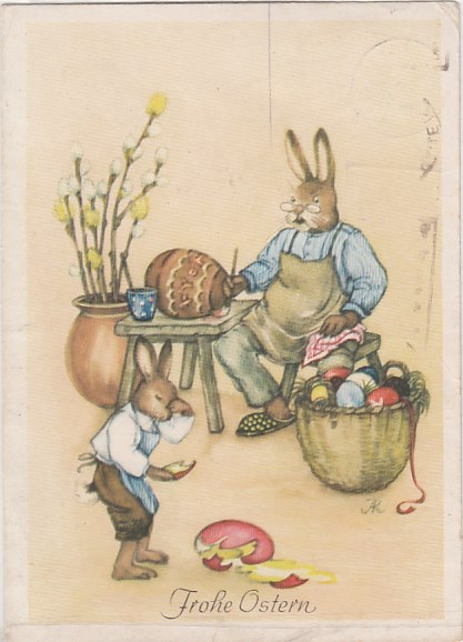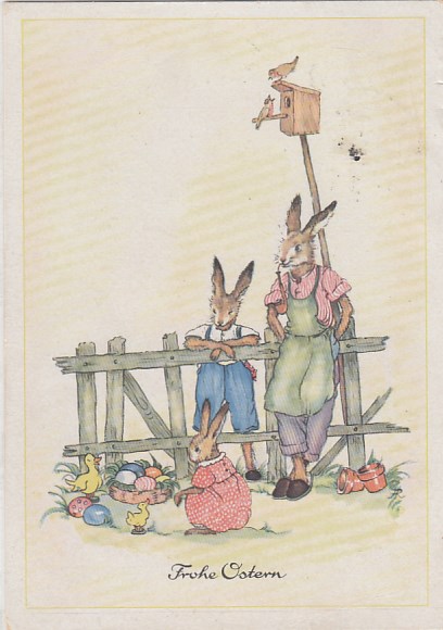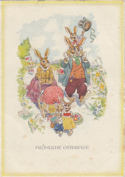 Glückwunsch AK Frohe Ostern Ansichtskarte Hasen Künstlerkarte