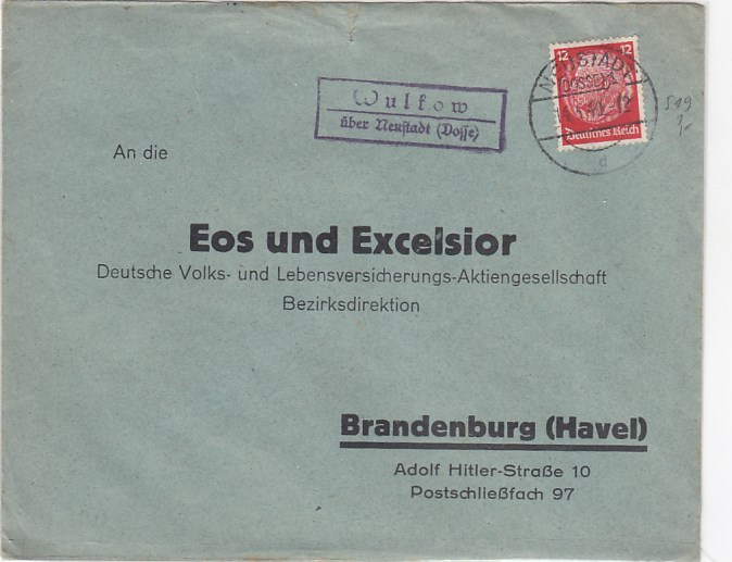 Landpoststempel auf Brief Wulkow Neustadt Dosse