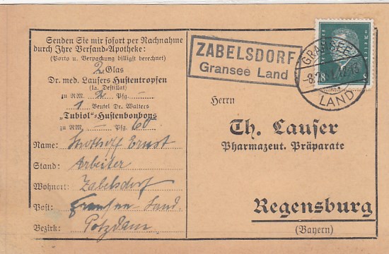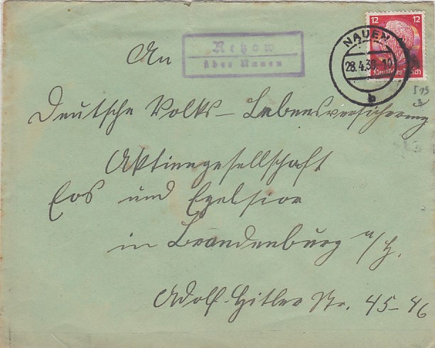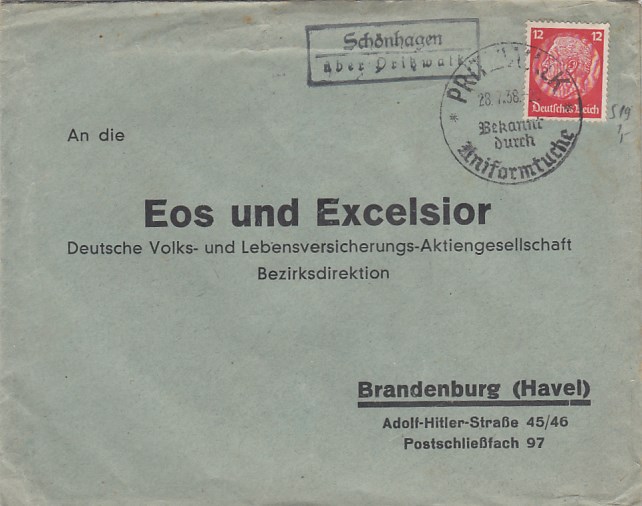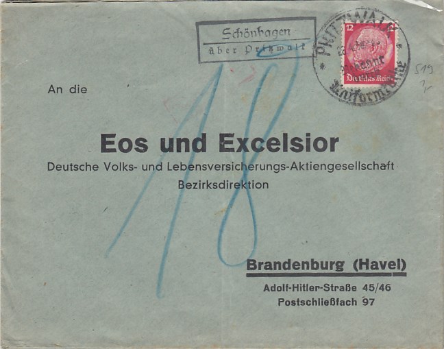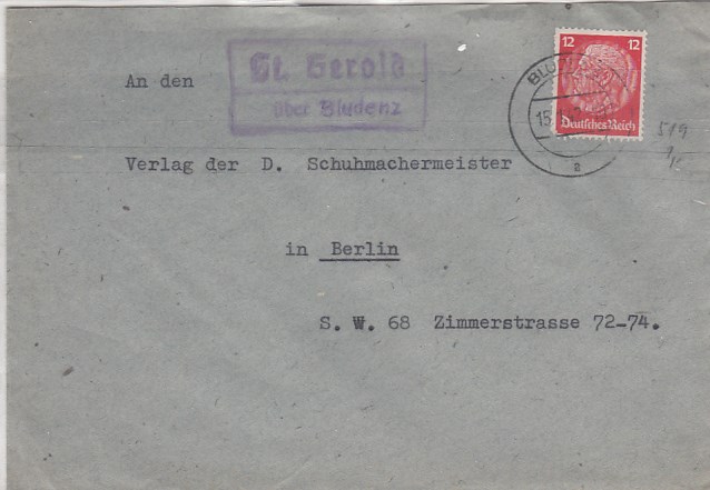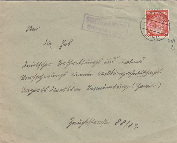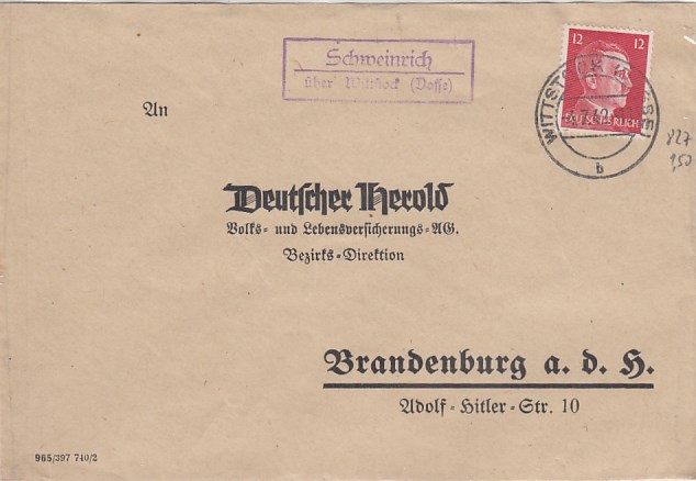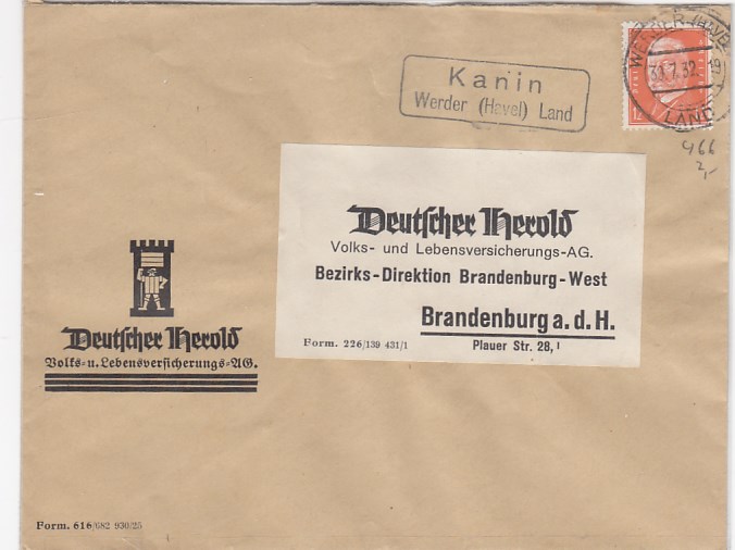 Landpoststempel auf Brief Kanin Werder Havel Geschäfstpost Deutscher Herold