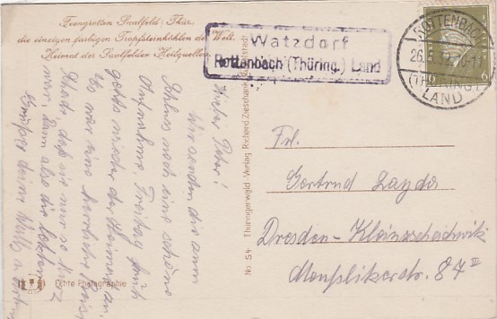 Landpoststempel Watzdorf Rottenbach AK Saalfeld