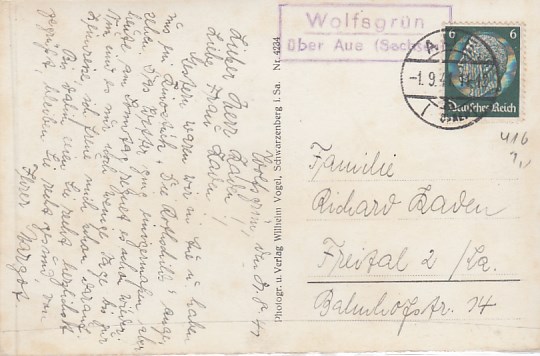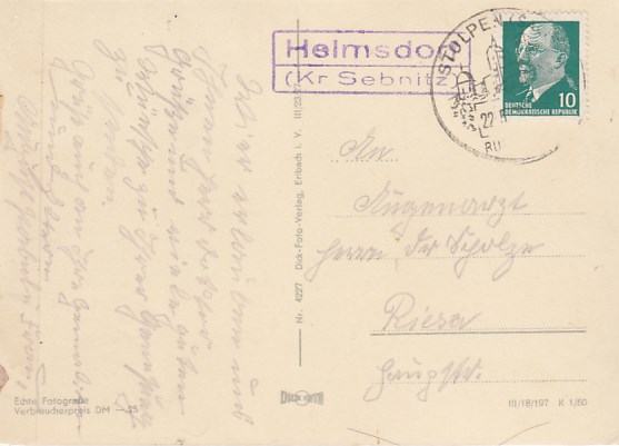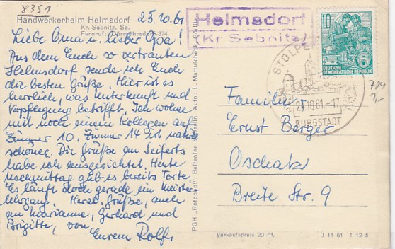 Landpoststempel Wolfsgrün Bockau bei Zimmersacher Blumenthal Sosa Eibenstock