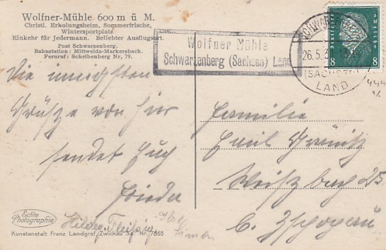 Landpoststempel Wolfner Mühle Schwarzenberg Mittweida-Markersbach Scheibenberg