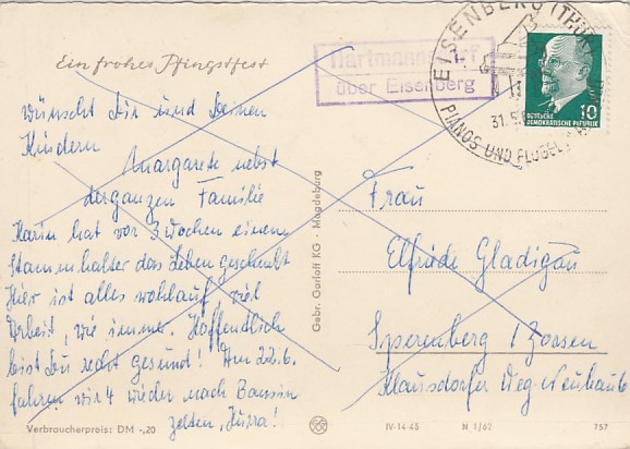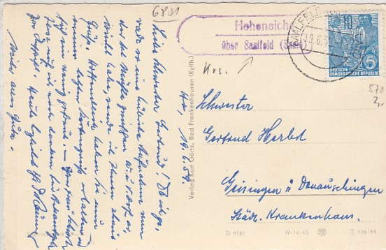 Landpoststempel Hoheneiche Saalfeld AK wickersdorf