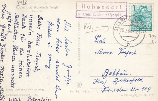 Landpoststempel Hohendorf Oelsnitz AK Bad Elster