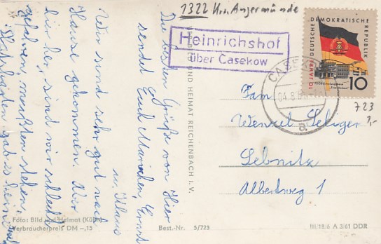 Landpoststempel Heinrichshof Casekow AK Gartz Oder