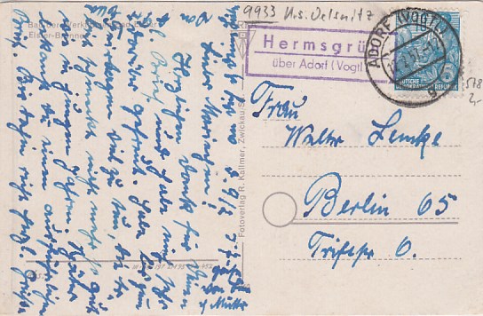 Landpoststempel Hermsgrün Adorf AK Bad Elster