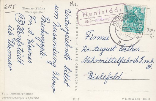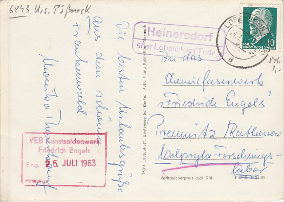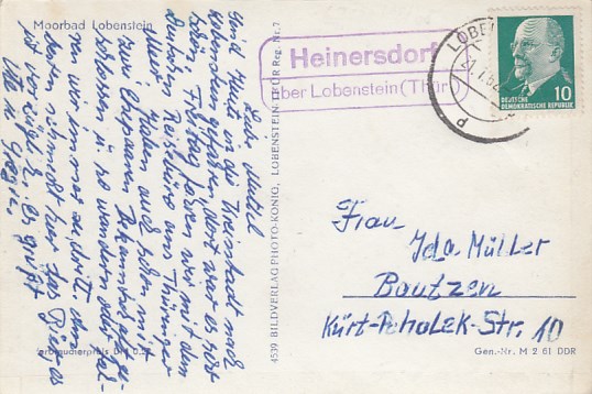 Landpoststempel Heinersdorf Lobenstein Burg Ranis