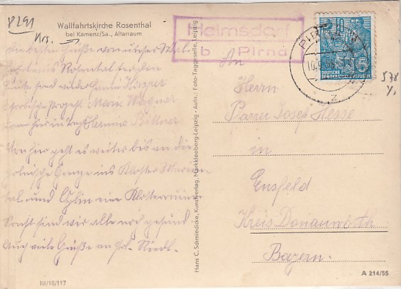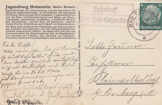 Landpoststempel Lohsdorf Jugendherberge Hohnstein
