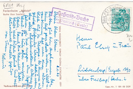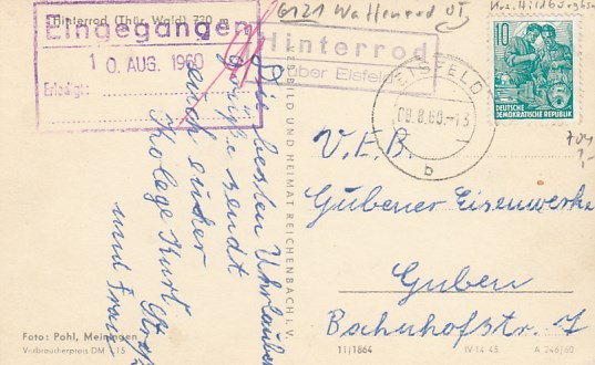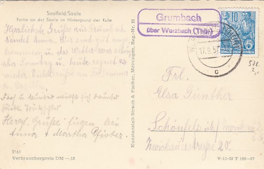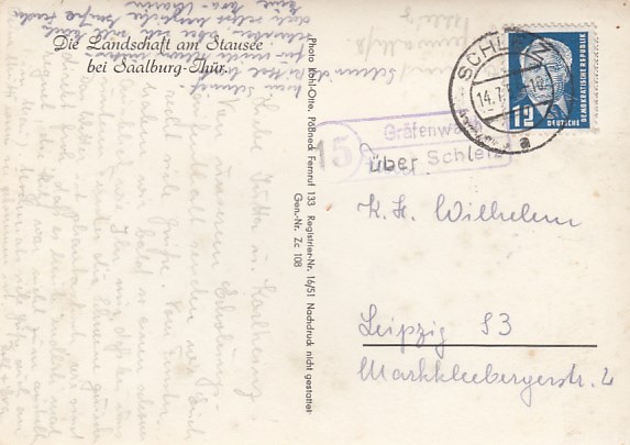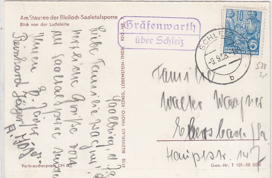 Landpoststempel Gräfenwarth Schleiz Stausee Saalburg