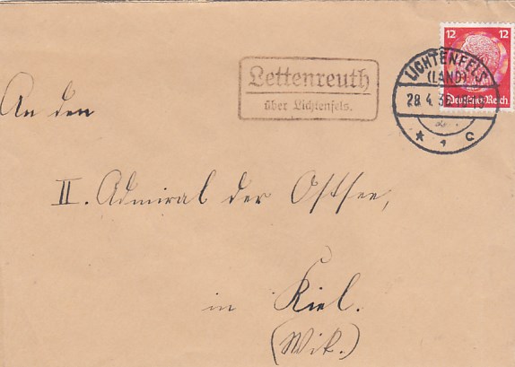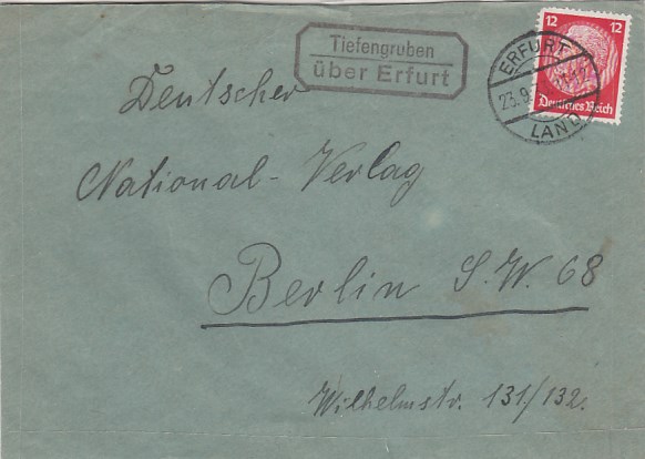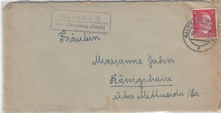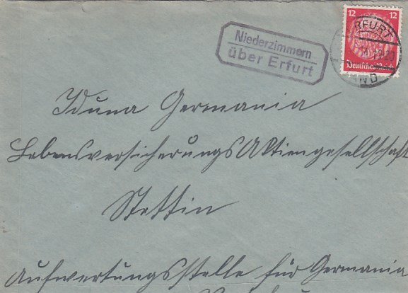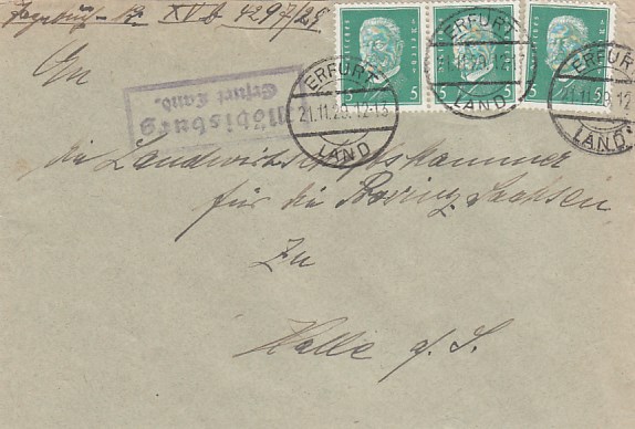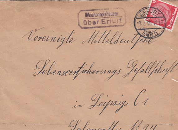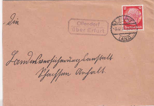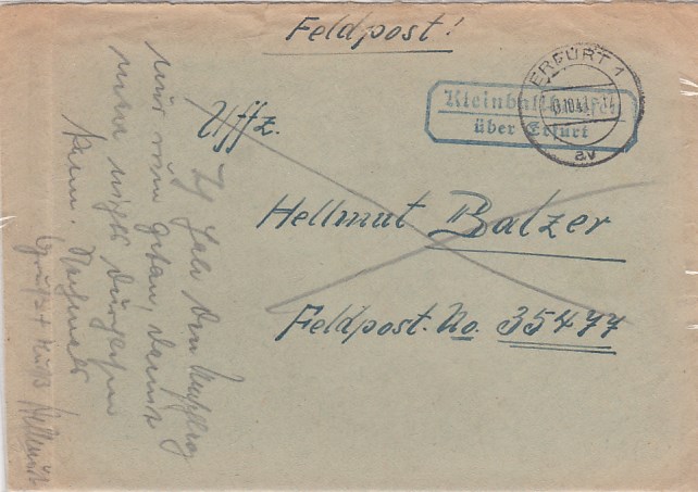 Landpoststempel auf Brief mit Inhalt Kleinballhausen Feldpoststempel Erfurt
