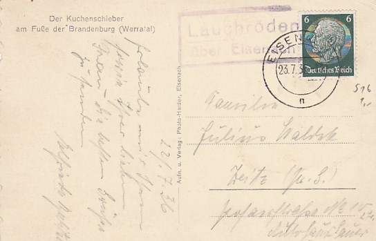 Landpoststempel Lauchröden Der Kuchenschieber am Fuße der Brandenburg Werratal