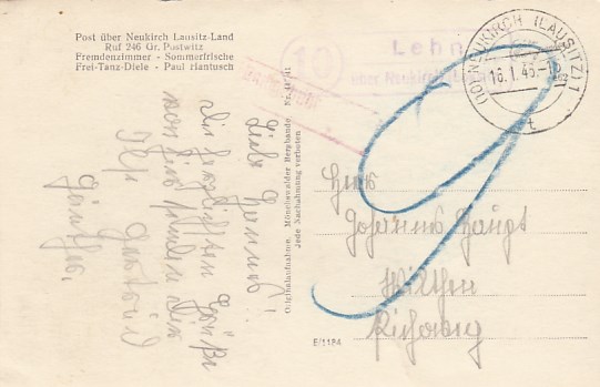 Landpoststempel Lehn Mönchswalder Bergbaude Feldpoststempel Neukirch Lausitz