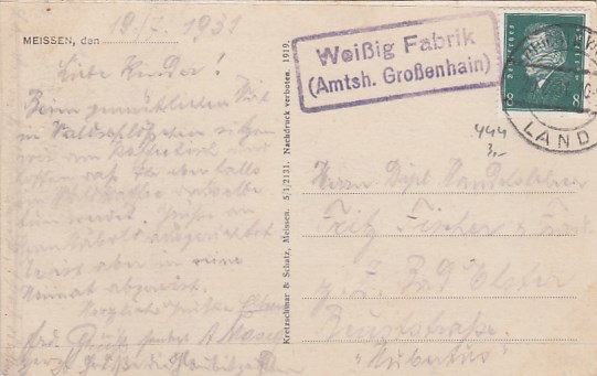 Landpoststempel Weißig Fabrik Großenhain AK Meissen Meißen Waldschlösschen