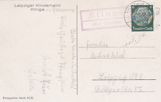 Landpoststempel Klinga Grimma Leipziger Kinderheim Luftbild